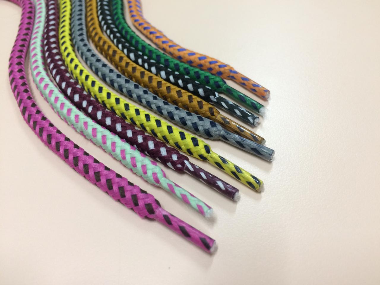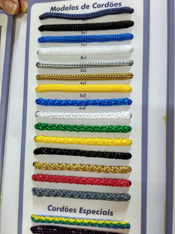 São produzidos com diversos tipos de fios, Poliéster, Polipropileno, Fio 30, Algodão Cru, Algodão reciclado, em diversos tamanhos e diâmetros para os cordões redondo , para os cordões achatados podemos produzir em diversas larguras, nossas máquinas trançadeiras produzem diversas combinações de tramas e de cores. Com todos estes recursos atendemos os nossos clientes conforme suas necessidades.
